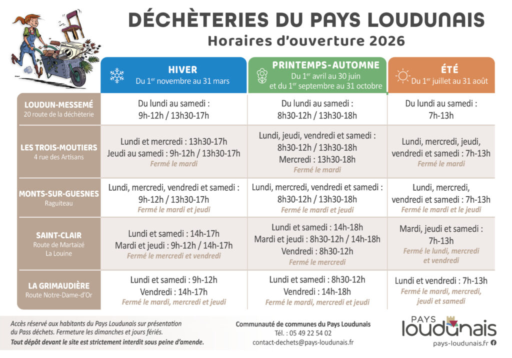 2026 : nouveaux horaires d'ouverture des déchèteries du Pays Loudunais